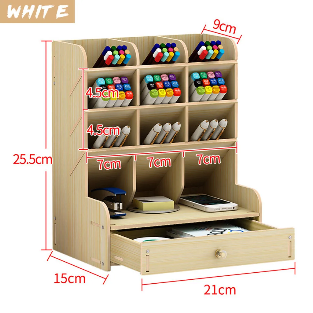 Wooden Desk Organizer Multi-Functional DIY Pen Holder Box Desktop Stationary Home Office Supply Storage Rack Convenient New